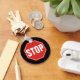 DETENER la señal de tráfico. Color de fondo personalizado. Texto personalizado en la parte posterior.