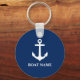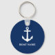 Una cadena de claves con temática náutica personalizada con el nombre de tu barco, el apellido u otro texto deseado. Este diseño único presenta un emblema de ancla de barco clásico hecho por un personalizado de color blanco sobre un fondo azul marino. Si es necesario, el color de fondo se puede personalizar fácilmente para que coincida con la decoración actual. Hace un gran regalo en cualquier ocasión para ese super capitán, capitán o marinero.