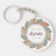 Las plumas bohemias luchan con el sueño y las flechas en el medio Nunca salgas de casa sin tu foto, diseño o mensaje inspirador favorito adjunto a tus llaves con esta cadena de teclas del círculo personalizado. Tus diseños, imágenes y texto serán impresos con total nitidez y a todo color en este llavero diseñado para resistir el desgaste del día a día.