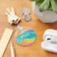 Este vibrante diseño abstracto capta la esencia de un paraíso tropical soleado. Las olas de turquesa, rosa, amarilla y verde que agitan el agua crean una composición dinámica y estratificada que recuerda a las piscinas de marea colorida y a las brillantes superficies oceánicas. Patrones juguetones de puntos, zigzags y formas orgánicas bailan a través de la superficie, evocando las diversas texturas y formas de vida que se encuentran en los arrecifes de coral. La paleta de colores cálidos y enérgicos nos recuerda los perezosos días de verano, las vacaciones exóticas y la fascinante belleza de los ecosistemas más coloridos de la naturaleza. Personaliza con un nombre.