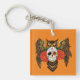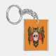 Un gran búho de cuerno pardo con un día de cráneo de azúcar muerto y rosas rojas en el fondo de un naranja