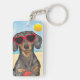 ¡Es la vida de un perro! Estar fresco y celebrar los días de verano del perro con este lindo Dachshund usando gafas de sol y relajándose con una bebida.