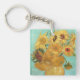 Sunflowers (1889) Vincent van Gogh. Todavía la vida en un fondo azul. Un ramo luminoso de flores de girasol se levanta en un jarrón. Reproducción de obras famosas de imágenes artísticas de dominio público.