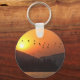 Escenario impresionante con la puesta de sol sobre el lago Este, Wuhan, China con un rebaño de gansos silvestre en el cielo.