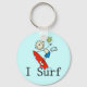 Camisetas de surf, tazas, bolsos de té, capuchas, camisetas de tanques, pegatinas y otros artículos de diseño de surf con una figura de palo como surfista masculino en una tabla de surf roja.