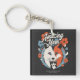 The centerpiece of the design features a beautiful mother fox, rendered in a striking white and burnt orange split-color style, protectively cradling her small fox pup. The duo is encircled by a soft blue moon-like backdrop, decorated with vibrant red and blue blooming flowers and floating red hearts.