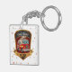 Este keychain personalizado para niños cuenta con una encantadora placa para bomberos. En el centro de la insignia se encuentra un camión de bomberos infantil de estilo personalizado, de un rojo intenso. La pancarta superior dice "Líder Escuadrón" mientras que la parte inferior es para el nombre de tu pequeño.