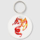 un diseño decorativo de un mítico dragón, lagarto o serpiente en colores rojo y naranja que le da un aspecto de llamas ardientes en una cadena de llaves.