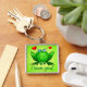 Una linda rana verde de ojos buenos con corazones rojos y un mensaje feliz - "¡te amo!". Cadena de llaves dulce y romántico para tu(s) ser(s) querido(s). Puedes cambiar el texto si quieres, por ejemplo gracias, llámame, sé salva, tu nombre, etc.
