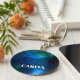 Cadena de teclas personalizado con fondo de espacio azul. Agregue su propio nombre a este producto utilizando la plantilla personalizado.
