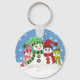 Una cadena de teclas de botón redondo con una colorida familia de hombres de nieve © ArianeC Ilustraciones