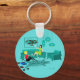 Parece que va a ser un momento divertido con esta kitschy cadena de teclas Noche en botón de los Chicas Retro. El diseño de arte minimalista, al estilo de los años 60, cuenta con dos mujeres con cócteles rosas en una moderna sala de estar totalmente de mediados de siglo, con un ambiente moderno, acuático y turquesa. Estas señoras sin duda saben cómo relajarse. La belleza del cabello cuervo en el vestido verde, coquetón, está tumbado en el sofá atómico. Su compañero rubio está sentado sobre una alfombra de papel de cebra, con un top rojo y pantalones ajustados y negros. El reproductor de discos de vinilo vintage y las lámparas de linterna de papel dan un toque de humor. Sobre el sofá moderno cuelga una estampa enmarcada, de época espacial, de estampado artístico.