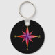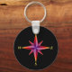 Los símbolos de mapa rojo y morado coloridos etiquetan las direcciones cardinales.
