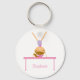 Este anillo de llaves del chica tiene un diseño lindo de un chica de pelo castaño haciendo un pie de cabeza sobre un haz de balance. ¡Puedes personalizar tu propio nombre! ©2010 Diseños de JD Digi