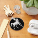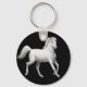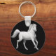 Diseño de un caballo blanco trotando por Carolyn McFann de Two Purring Cats Studio en una cadena de claves para los aficionados al equino.