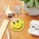 Una cadena de llaves con una gran cara sonriente clásica/cara feliz centrada en el frente.