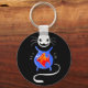 Keychain con un esqueleto gato fantasma y un bol de peces dorados.