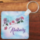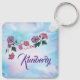 Personalice esta cadena de palabras única "One of a Kind". Se trata de un colibrí que toma el néctar de unas hermosas flores rosadas y púrpura en un fondo de nubes moradas y rosas. Pintura original Bella Artes del artista Kerry Miller.