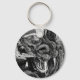 Un dragón acecha en una cueva en lo profundo del subsuelo. Keychain con un diseño de personalizable en blanco y negro para que puedas personalizar con tu propia carta inicial. Imagen creada a partir de un dibujo original de tinta de Jess Perry.