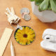 Este hermoso keychain incluye una detallada fotografía de una caléndula amarilla con un centro oscuro. La fotografía fue tomada usando macrofotografía. Se pueden ver todas las pequeñas gotitas de agua sentadas en los pétalos de esta exquisita flor.