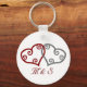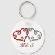 Un gran llavero para que una pareja feliz haga saber a todos sobre su nuevo compromiso. Muestra dos corazones interconectados, uno en rojo y otro en plata. Monograma totalmente personalizable.
