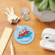 Personalizado de un hombre en forma azul lavando la mano con un auto rojo. Color de fondo personalizado. Texto personalizado en ambos lados.