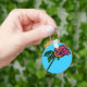 Esta cadena de teclas de bonito presenta un rosa colorido sobre un fondo azul cielo