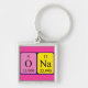 Ona se deletrea como O Na (Oxygen Sodium) en un llavero para el científico en usted.