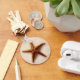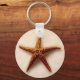 Cadáveres de regalo de playa con estrellas de mar en la arena en tonos tierra beige y marrón. El titular de una llave de pescado estrella hace un gran favor para una fiesta temática tropical o de playa, cumpleaños, evento o keychain con un presupuesto.