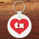 Esta cadena de claves presenta un corazón rojo vibrante que contiene las letras fundas tx, negrita, blanca y redondeada, una abreviatura divertida para Texas, el estado de la estrella solitaria.