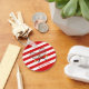 Este diseño presenta raquetas de tenis cruzadas con dos pelotas de tenis en un fondo de rayas rojas y blancas. Está listo para que usted lo personalize con su propio título o nombre. El texto predeterminado es "EAT SLEEP TENNIS". En la parte trasera hay un sencillo patrón de repetición de raquetas de tenis con fondo blanco.