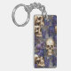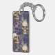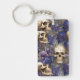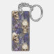 Tétricas calaveras con toques dorados y color oro, con una filigrana de flores en tonos azules y morados