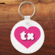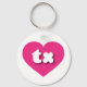 Esta cadena de claves cuenta con un vibrante corazón rosado caliente que contiene las letras fundas tx, negrita, blanca, redondeada y baja, una abreviatura lúdica para Texas, el único estado estrella.