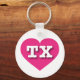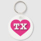 Esta cadena de claves cuenta con un vibrante corazón rosado caliente que contiene las letras atrevidas, blancas y fundas superiores TX, la abreviatura oficial de Texas, el estado de la estrella solitaria.