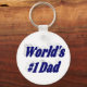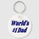 Cadena de claves con el primer papá del mundo en texto azul del océano en 3D. Las cadenas de clave redonda y cuadrada están disponibles en varios tamaños.