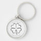 Faux Silver Gray Four Leaf Clover Elegante Keychain moderno con texto personalizado Buena Suerte, añadir tu nombre o borrar todo el texto, el único regalo de buena suerte