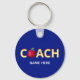 Entrenador de texto con manzana en Keychain azul. El texto se puede personalizar agregando nombre, asignatura o escuela.