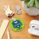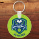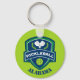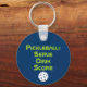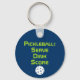 Personalizable. Baloncesto verde claro, azul marino y verde oscuro con dos palas de peletería cruzadas blancas y pelota de pepinillo verde limón. Atrás: fondo azul marino con texto personalizado: Pickleball - servir, dink, score