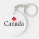 Texto personalizado de Canadá con hojas de arce rojas minimalista moderno y patriótico keychain acrílico. Personalizable completamente el texto negro sobre fondo blanco para que puedas personalizarlo y hacerlo único. Celebra y muestra tu orgullo canadiense con el keychain de hojas rojas de Canadá.