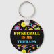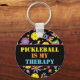 Anillo de llaves de doble lado negro dulce con Groovy, estilo de pickleball de estilo retro de los años 90 con bolas de picnic amarillas y fondo negro.
