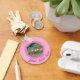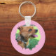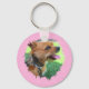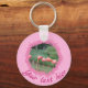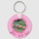 Texto moderno personalizado y 2 fotos en la cadena de teclas de patrón rosado. Puede utilizar una o dos fotos para personalizar este elemento.