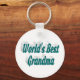 Cadena de claves con la mejor abuela del mundo en texto verde azul 3D. Las cadenas de clave redonda y cuadrada están disponibles en varios tamaños.
