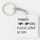 Llavero Thanks for coming please leave by 9 PM