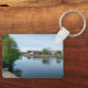 A wide-angle, scenic view of the Calder & Hebble Navigation in Wakefield, West Yorkshire, on a bright, clear day. The photograph showcases the wide, still waters of the canal reflecting the soft blue sky and surrounding greenery. Along the far bank, a mix of traditional industrial brick buildings and modern commercial structures, including the Hepworth Wakefield area and nearby warehouses, lines the stone-walled towpath. Lush green trees and weeping willows frame the scene, emphasizing the intersection of nature and urban industry in this historic Yorkshire navigation.