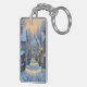 A key ring with “The Town In Winter” design printed on it, ideal for decorations for car keys, home keys, store keys, etc.