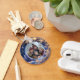 La temporada de los Navidades - una época llena de asombro, alegría, esperanza, expectativas y sorpresas. Este adorno cuenta con un torbellino dorado de copas de nieve en el cielo azul de la noche sobre el bosque invernal con una imagen de su familia, mascota o lo que le gusta. ¡Una idea maravillosa de regalo para los abuelos! Foto personalizada.
