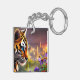 Magnífico paisaje montañoso del tigre de ojos azules y flores rosadas Tiger Cub en el lado opuesto AI generó arte de IA creado por minx267