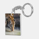 Esta increíble cadena de claves gráficas de Tiger presenta una colorida foto de primer plano de un tigre de un lado y del otro la imagen de otro tigre bebiendo de un agujero de agua. Un buen accesorio para arreglar tus llaves.