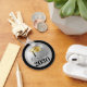 Tapón de graduación de año de clase con tono dorado y tapón negro de grado, fondo de tono plateado y borde negro.