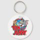 A colorful cartoon logo featuring a cheerful gray cat and a playful brown mouse above bold red letters spelling “Tom and Jerry,” set against a blue circular background.